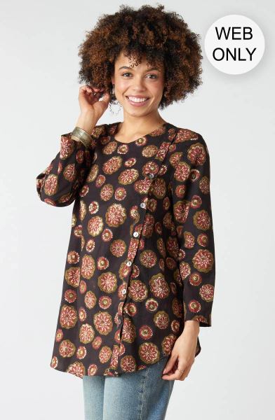 Discover our collection of tops for women, featuring hand-crafted tunics, blouses, and everyday essentials made by skilled women artisans in India. From soft cotton camis and tees to versatile 3/4 sleeve and long sleeve tops, each piece is designed with comfort, style, and individuality in mind. Our tunic clothing for women showcases hand-dyed fabrics, artisan prints, and thoughtful details that make every top unique. Effortlessly pair them with our jackets and pants for timeless, versatile outfits. Available in both misses and plus sizes, our ladies tops bring together fair trade values, artistry, and enduring style.
