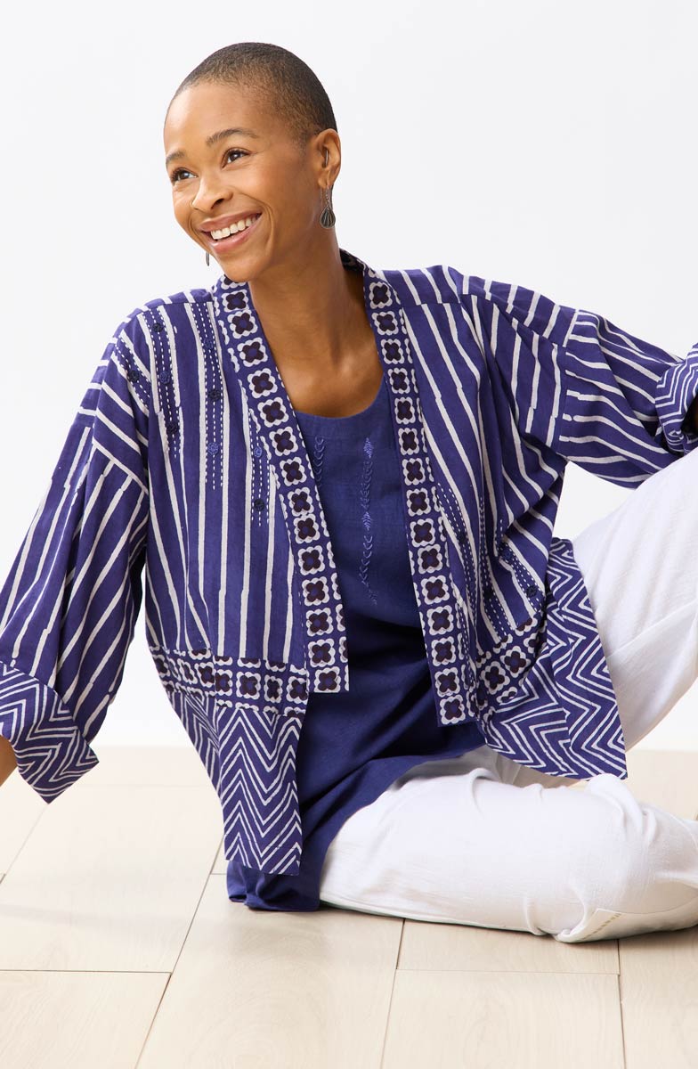Hand block printing is a time-honored technique where skilled artisans hand-carve intricate designs onto wooden blocks. Each block is carefully coated with vibrant ink or dye and meticulously stamped onto 100% cotton fabric, creating beautiful patterns with every impression. The precision and skill required ensure each piece of women's fair-trade clothing is truly unique, offering an artisanal touch that sets it apart from mass-produced prints. Experience the heritage and craftsmanship in every piece.