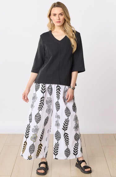 Nishi Organic Cotton Wide-Leg Pant - White/Black