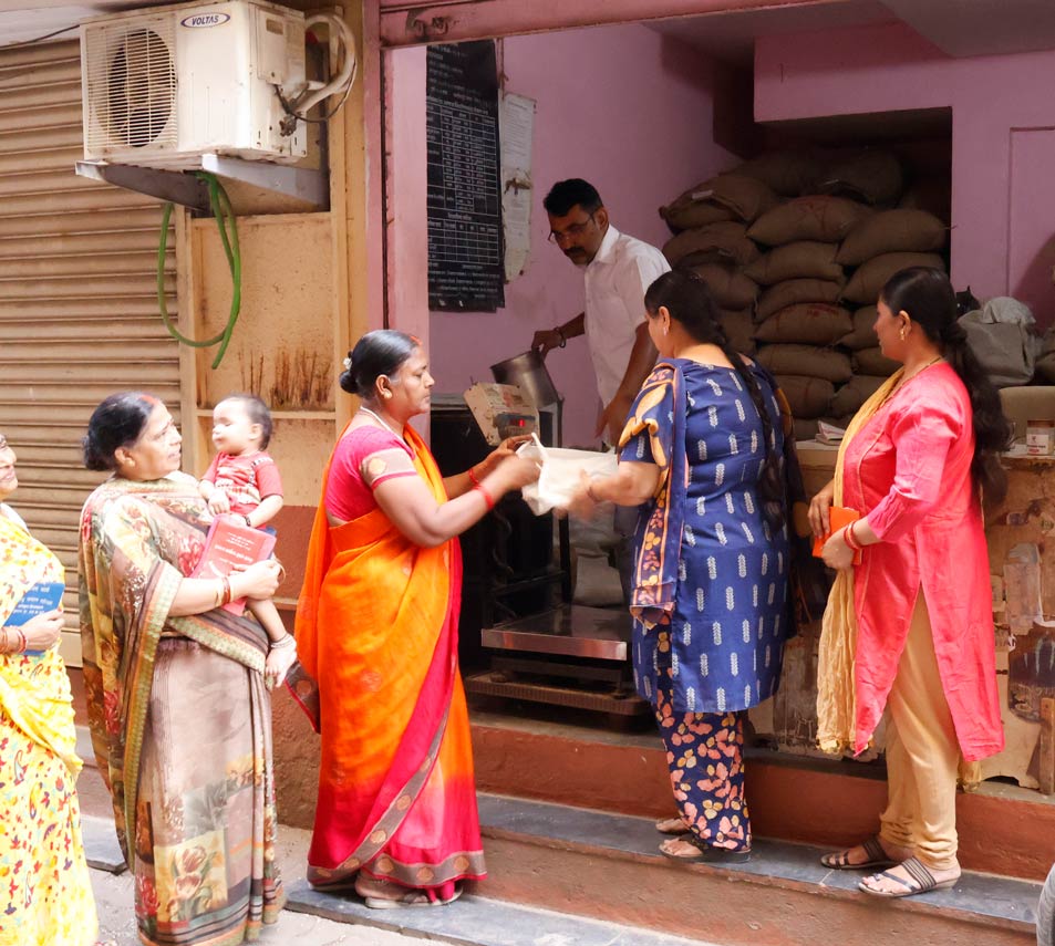 Because of their work in the cooperatives, the women artisans are no longer among the poorest, yet they still qualify for some PDS benefits. Access isn't always easy—unscrupulous shopkeepers may limit supplies, use faulty scales, or compromise quality. Social Workers held meetings to equip the women with the knowledge and confidence to navigate the system and secure their fair share.