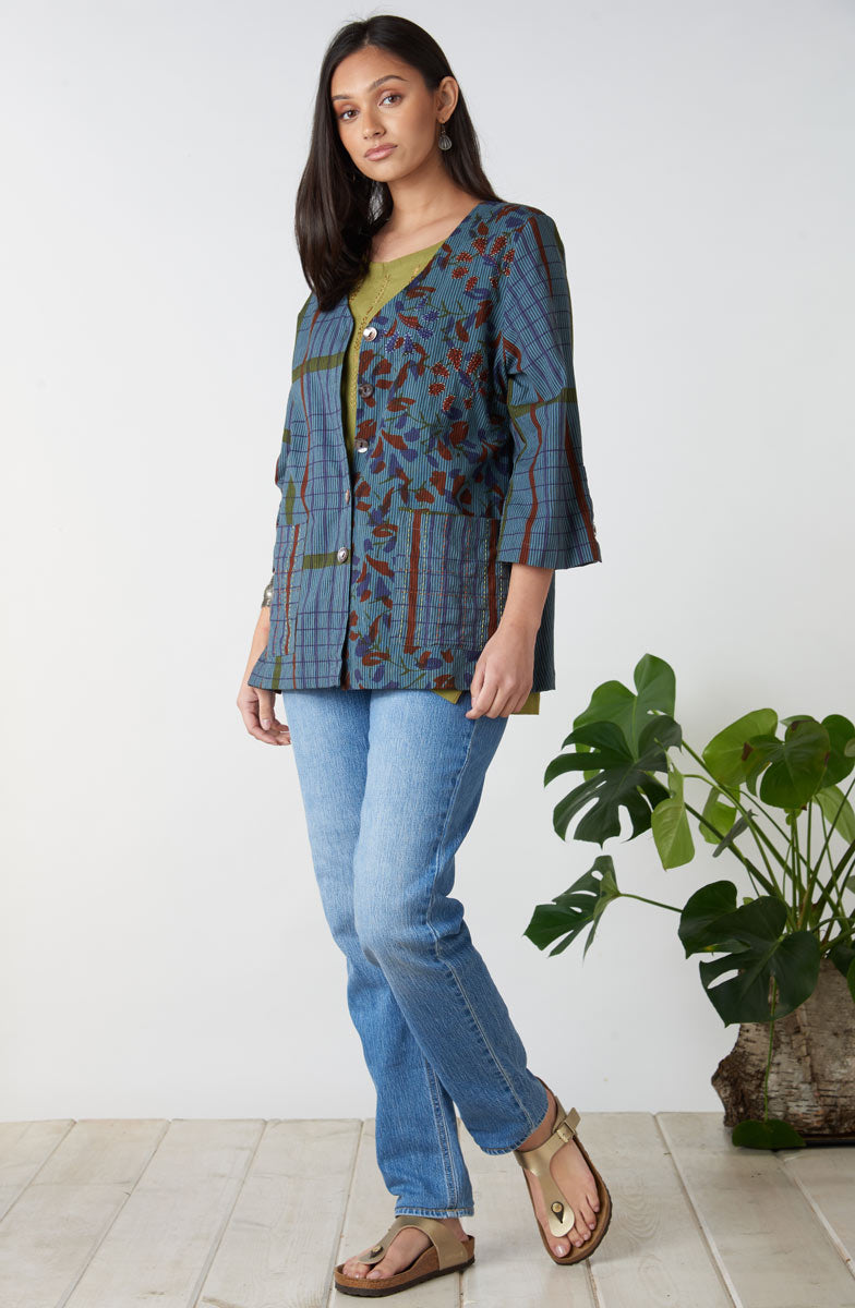 Jayati Mixed Print V-Neck Jacket - Blue/Multi
