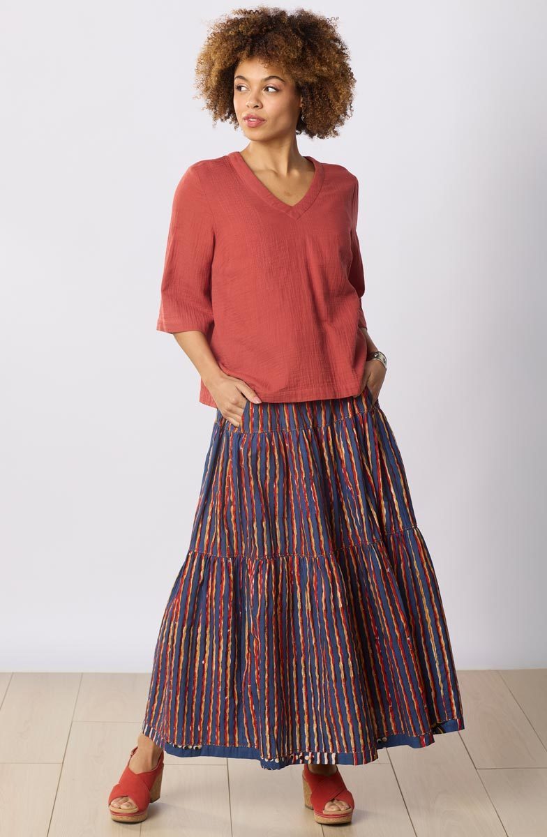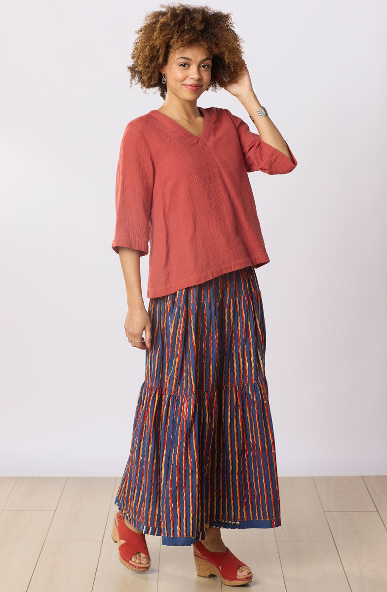 Garments are pre-shrunk. Our hand-printed and hand tie-dyed fabrics have been washed, sometimes multiple times, as part of the printing process. The fabric will not shrink in a cold water wash.