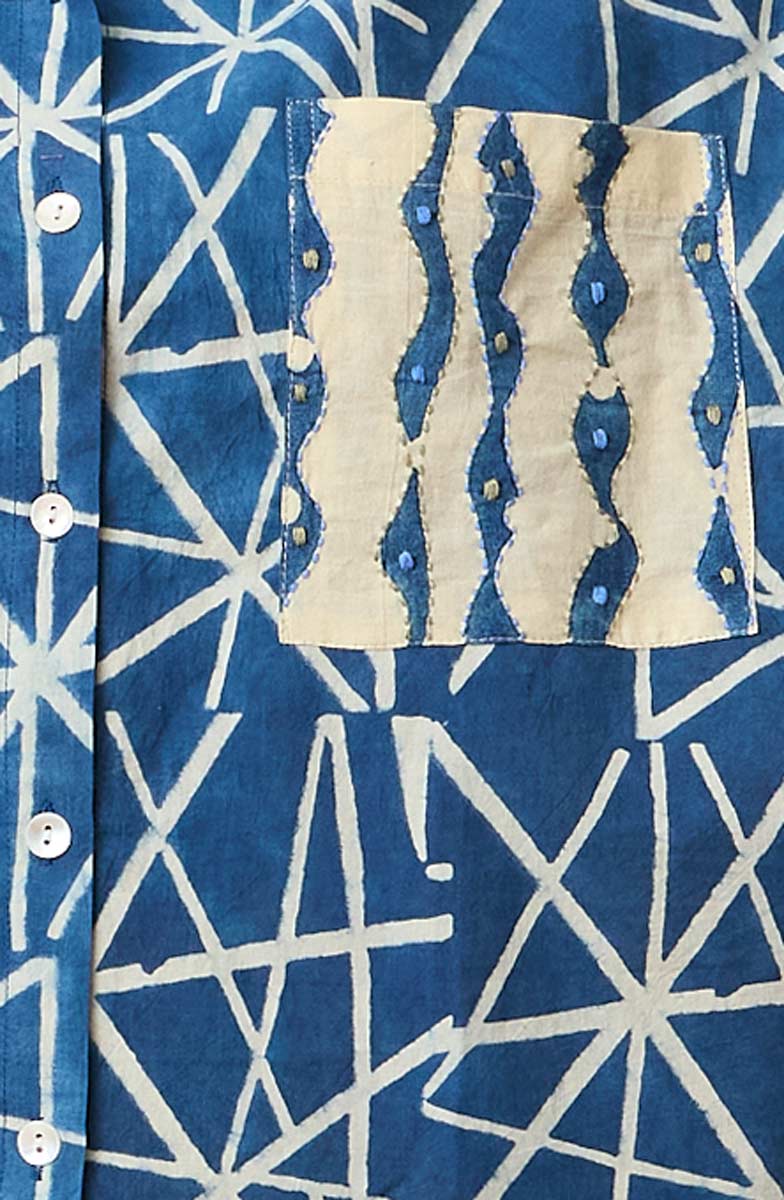 Another MarketPlace favorite, this comfortable oversized shirt is crafted in an extraordinary natural dye resist print for one-of-a-kind character. Dropped shoulders and short sleeves create an easy, relaxed silhouette, while a contrast chest pocket adds a thoughtful design touch. Generously cut — size down if you prefer a more streamlined fit.