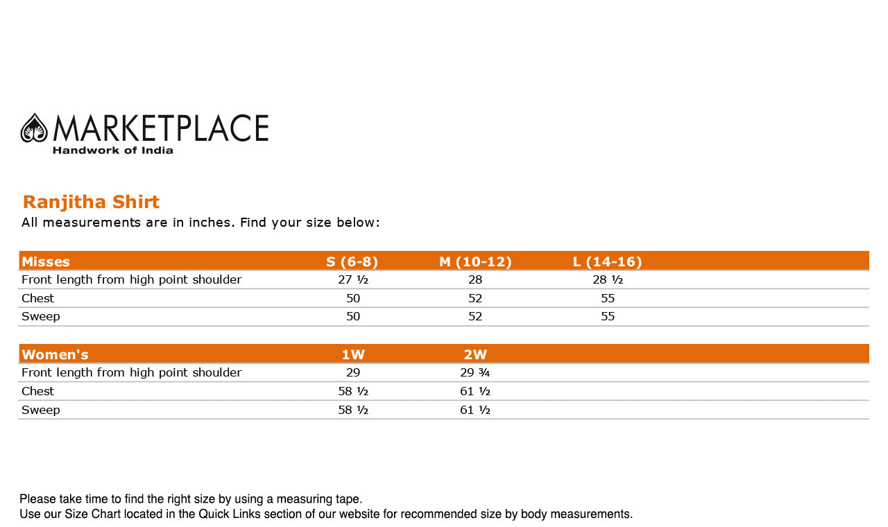 MarketPlace garments are designed to have a relatively loose fit. The jackets and vests are sized to layer over shirts, tops, or a sweater. The length of the pants is either the outer seam measurements or the inseam measurement, as stated in the product description. Please take time to find the right size by using a measuring tape. Garment Measurement charts are located on each product page. Most Marketplace products are 100% cotton, but the fabrics are pre-washed so shrinkage is minimal. Feel free to contact us if you have any questions.