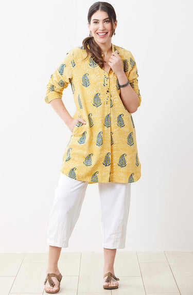 Garments are pre-shrunk. Our hand-printed and hand tie-dyed fabrics have been washed, sometimes multiple times, as part of the printing process. The fabric will not shrink in a cold water wash.