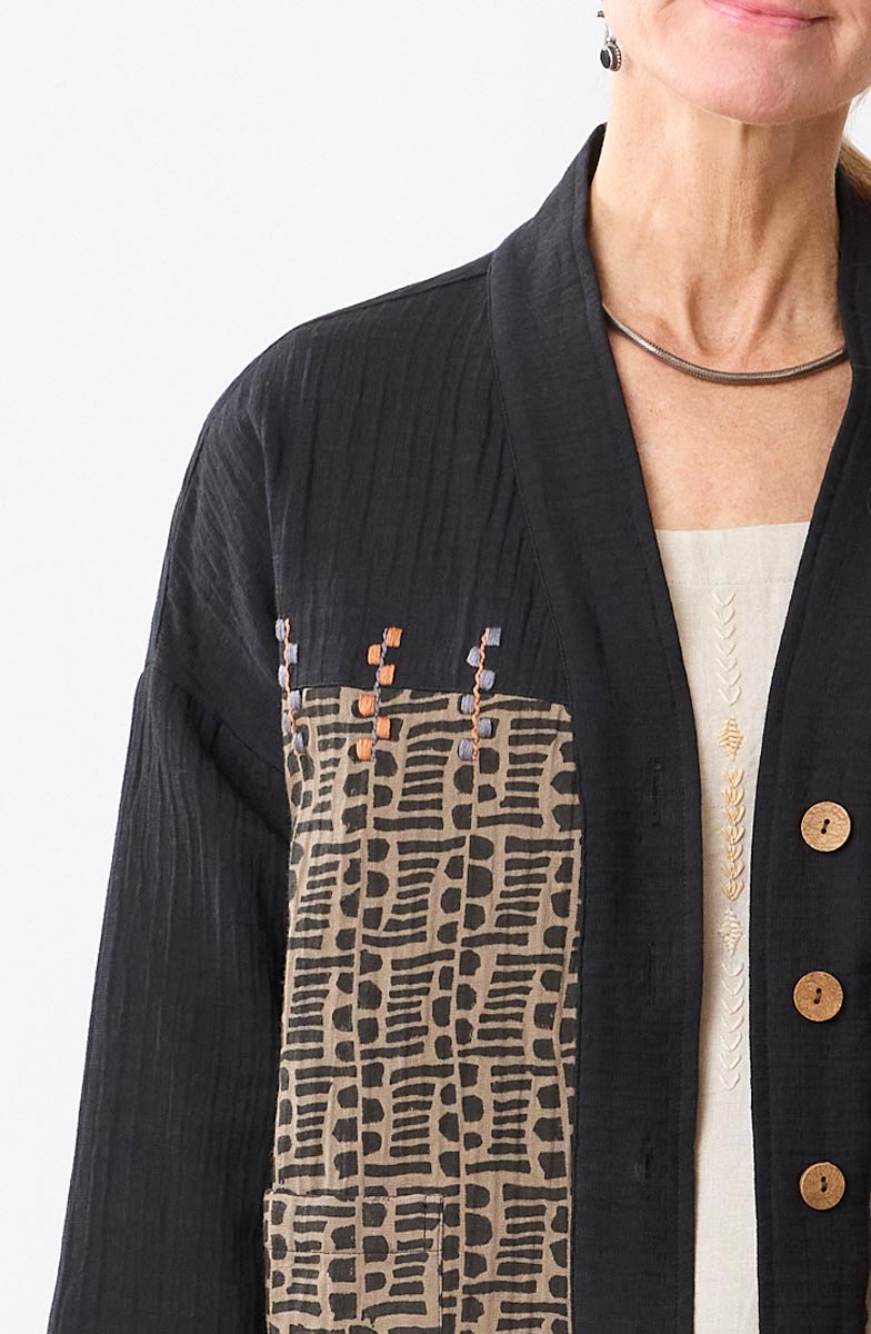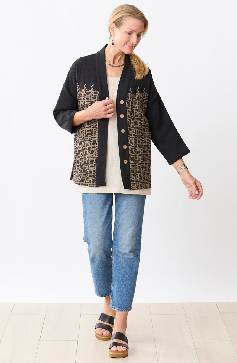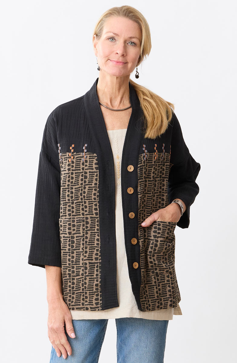 Rupashi Cotton Dobby Gauze Jacket - Cumin/Black