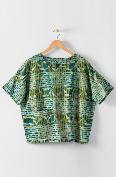 Shalini Popover Boxy Top - Dusty teal/Green tea