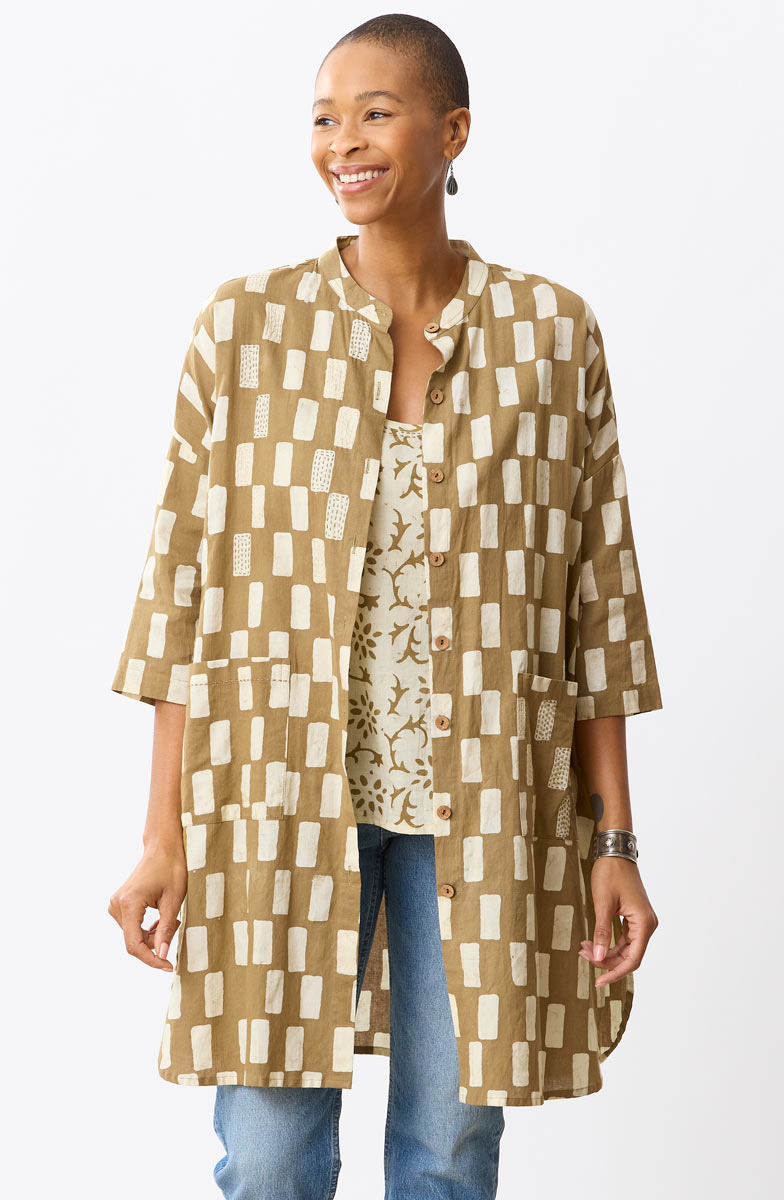 Usha Batik Print Oversized Shirt Jacket - Straw